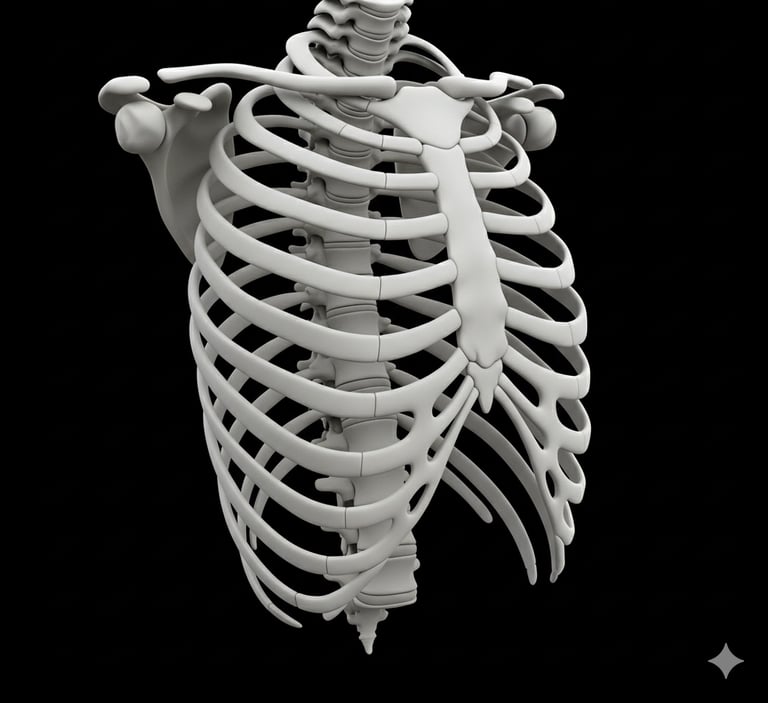 لقفص الصدري بيتكون من عظام الضلوع، عظمة القص، والعمود الفقري. دوره الأساسي حماية القلب والرئتين والأعضاء الحيوية، وكمان بيساعد في عملية التنفس